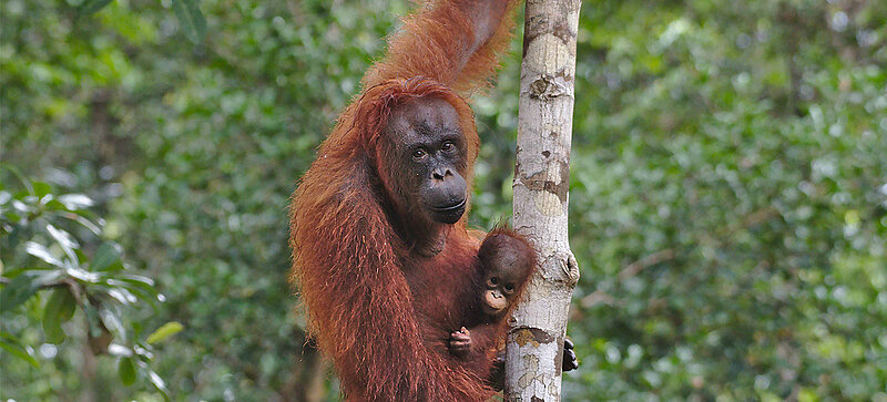 Nous soutenons le projet Rimba Raya en Indonésie, qui se consacre à la restauration des forêts et à la création d'habitats supplémentaires pour les animaux sauvages tels que les orangs-outans, une espèce menacée. La réserve de biodiversité Rimba Raya, d'une superficie de 64 000 hectares, située au sud-est de Bornéo, abrite certains des orangs-outans de Bornéo menacés et sert de zone tampon entre les plantations de palmiers à huile et le parc national de Tanjung Puting. Ce projet réduit les émissions de gaz à effet de serre de 3,5 millions de tonnes par an en moyenne et a été certifié par le Sustainable Development Verified Impact Standard (SD VISta) et l'AENOR comme contribuant à l'ensemble des 17 objectifs de développement durable des Nations unies.