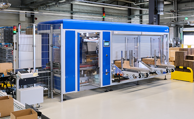 Désormais, lors de la préparation des marchandises et des matériaux d'emballage de protection en vue de l’expédition, il n’est plus nécessaire de passer par le pliage et la mise en place du carton à la main. Avec AUTO.ERECT, Storopack offre une alternative bien plus efficace : le montage automatisé du carton et le scellement de son fond. Le système Storopack s'acquitte de cette tâche en toute fiabilité et peut traiter jusqu'à quatre tailles de carton dans un ordre aléatoire – une solution offrant une productivité maximale pour la dernière étape du processus intralogistique.